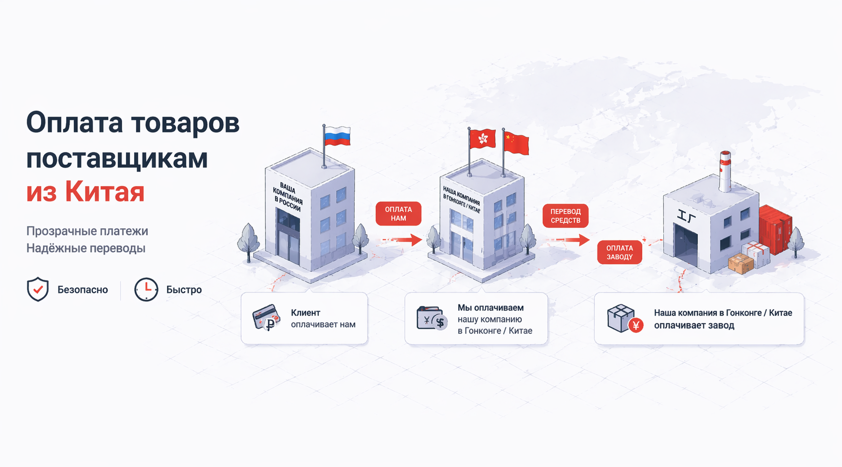 Головная компания в Гонконге с платёжной лицензией. Оплата в долларах поставщикам из любой страны мира.
